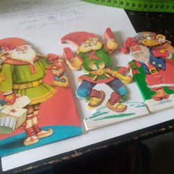3st juldekorationer tomtar på rad i papper gamla