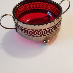 Retro sockerskål med rött glasskål