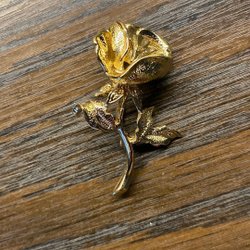 Oanvänd guldfärgad ros brosch