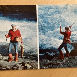 Vykort med flugfiskare i Ristafallet, Jämtland