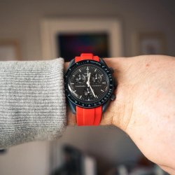 Rött Gummiarmband tillverde för att passa Omega X MoonSwatch