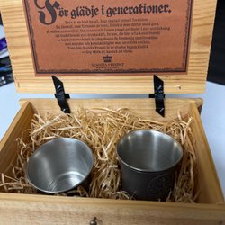 Scandia Tenn snapsglas i trälåda