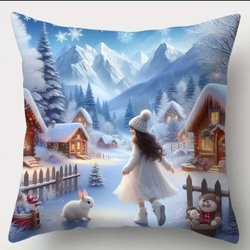 NYTT kuddfodral med söt flicka och kanin en snödag