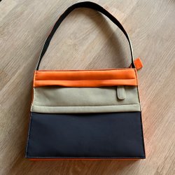 Anna Holtblad för Åhléns orange, beige, svart handväska
