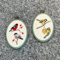Broderade tavlor med fågelmotiv