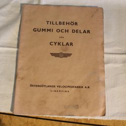TILLBEHÖR GUMMI OCH DELAR FÖR CYKLAR ÖSTERGÖTLAND VELOCIPEDFABRIK NO.18 UTG 1942