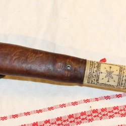 ISAK MATTI JUUSO , SAMISK KNIV MINITAYR MED VACKER DEKOR.