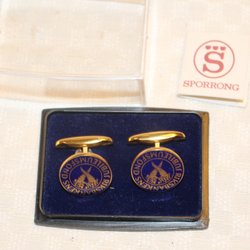 RIKSBANKENS JUBILEUMSFOND. EMALJERADE MANSCHETTKNAPPAR MED ETUI.