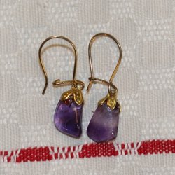 ÖRHÄNGEN PRYDDA MED LILA STEN. FÖRGYLLT 835 SILVER.