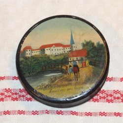 ANTIK DOSA MED VADCKER MOTIV, PAPIER MACHE