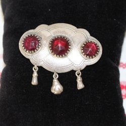 ANTIK BROSCH MED FINA DETALJER TILL FOLKDRÄKT . SILVER