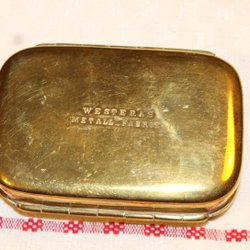 ANTIK SNUSDOSA MED DUBBLA LOCK. WESTERÅS METALLFABRIK. MÄSSING.