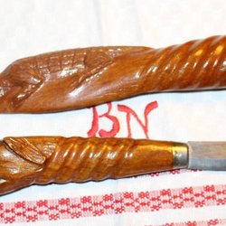 ÄLDRE KNIV MED SNIDAT HUNDHUVUD OCH KROKODIL. ERIK FROST MORA