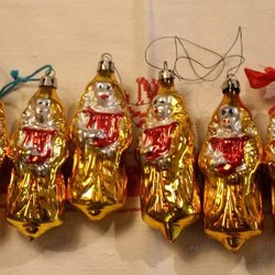 6 ÄNGLAR , ÄLDRE GLASKULOR MED VACKER DEKOR.