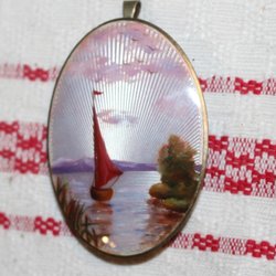 STÖRRE HÄNGE / BROSCH MED EMALJERAD DEKOR. SILVER. EMALJ