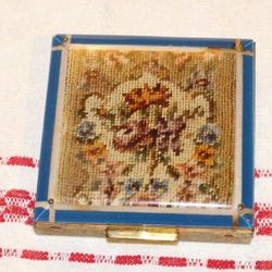 ÄLDRE PUDERDOSA MED VACKERT BRODERI.