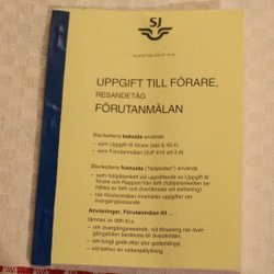 UPPGIFT TILL FÖRARE RESANDETÅG, FÖRUTANMÄLAN. SJ. OBEG. HÄFTE.