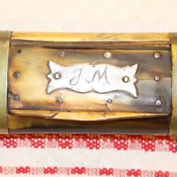 ANTIK SNUSDOA MED FINA DETALJER AV HORN.,