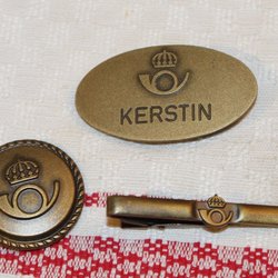 3 DELAR POSTVERKET POSTEN. BROSCH, NAMNSKYLT OCH SLIPSHÅLLARE