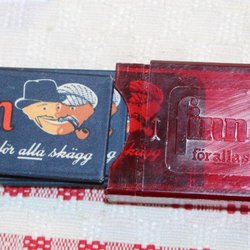 10 ÄLDRE RAKLBAD. FINN. MED ETUI.
