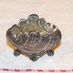 ÄLDRE SALTKAR MED GLASINSATS. MED VACKRA DETALJER.