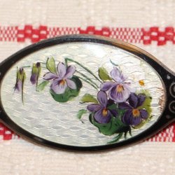 ÄLDRE EMALJERAD BROSCH MED VACKER DEKOR 925 SILVER. AKSEL HOLMSEN NORGE