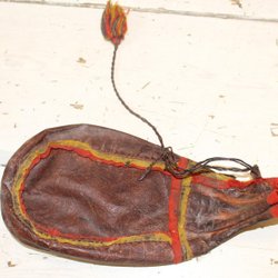 ÄLDRE SAMISK KAFFEPÅSE AV SKINN MED DEKOR.