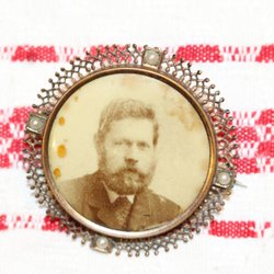 ANTIK BROSCH MED FOTOGRAFI