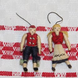ÄLDRE DOCKOR MED DRÄKT , MINIATYR L. 3.4 CM.