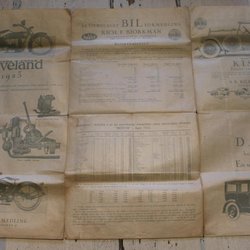 BROSCHYR PRISLISTA 1923 AMERIKANSKA BILAR OCH MC SV. SPRÅK. STOR KARTA. 95X77 CM
