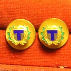 2 EMALJERADE KNAPPAR STÄMPLAT SILVER. I9=1959