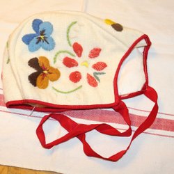 FLODA MÖSSA MED PÅSÖMNAD. BRODERAD DEKOR.