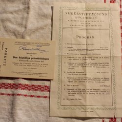 INTRÄDESKORT PRISUTDELNINGEN NOBELS HÖGTIDSDAG. 1945 + PROGRAMBLAD.
