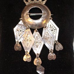 ANTIK BROSCH M. VACKRA DETALJER TILL FOLKDRÄKT KONTROLLSTÄMPLAT SILVER S7=1920