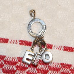 HÄNGE MED 3 BERLOCKER. BOKSTÄVERNA. E, L OCH V. 925 SILVER.