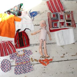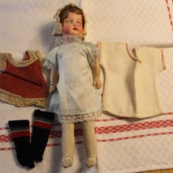 DOCKA PORSLINSHUVUD .HEUBACH KÖPPELSDORF 250 12/0 GERMANY. KLÄDER MEDFÖLJER.