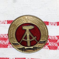 ÄLDRE MÖSSMÄRKE DDR , MED EMALJERAD DEKOR