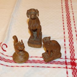 3 ANTIKA SNIDADE DJUR. HUND, KATT OCH EKORRE.
