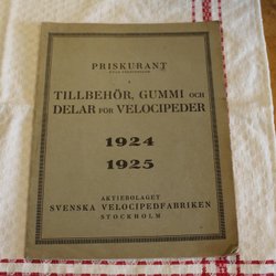 PRISKURANT. TILLBEHÖR, GUMMI OCH DELAR FÖR VELOCIPEDER. 1924/ 1925