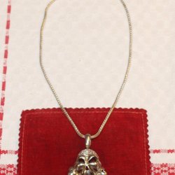 HALSBAND MED STÖRRE HÄNGE DÖDSKALLE. PRYDD MED STENAR. 925 SILVER.