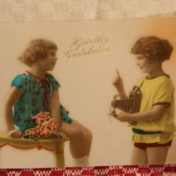 ÄLDRE VYKORT MED BARN OCH KAMERA. POSTG.