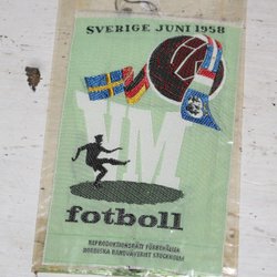 TYGMÄRKE FOTBOLLS VM 1958 , SVERIGE JUNI 1958. OBEG.