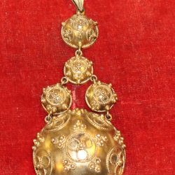 ANTIKT HÄNGE MED FINA DETALJER TILL FOLKDRÄKT .