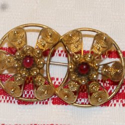 ANTIK BROSCH FÖRGYLLT SILVER TILL FOLKDRÄKT , ALLMOGE.