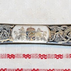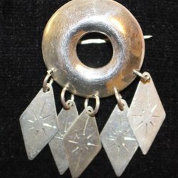 BROSCH MED VACKER DEKOR TILL FOLKDRÄKT KONTROLLSTÄMPLAT SILVER .RMMS. D10=1978