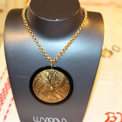 ÄLDRE HALSBAN MED HÄNGE / BROSCH MED VACKRA DETALJER.