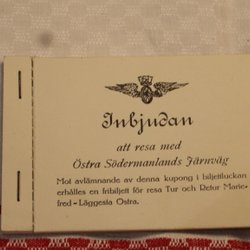 INBJUDAN ATT RESA MED ÖSTRA SÖDERMANLANDS JÄRNVÄG. BILJETTER