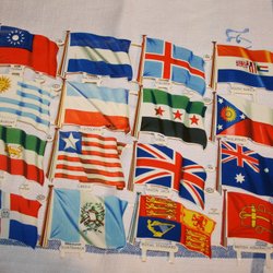ÄLDRE KARTA MED BOKMÄRKEN, FLAGGOR. M.P. MADE IN ENGALND.