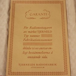 TJERNELD RADIOFABRIK. GARANTISEDEL