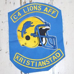 C 4 LIONS AFF KRISTIANSTAD. STÖRRE TYGMÄRKE. 34X26 CM. AMERIKANSKA FOTBOLL.